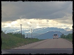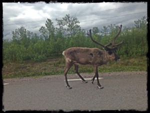 Vi flög upp till Kiruna och gjorde första stoppet i Abisko, Lappland. Från flygplatsen tog det ca 1,5 timme, ganska dåliga vägar. På vägen såg vi en ren, det första vi gjorde! Väldigt exotiskt och välkomnande. Vi bodde på Abisko Mountain Lodge, såg inte mycket ut för världen men rummen var fina iallafall. Dock så stängde restaurangen väldigt tidigt, kl 20.30, så vi fick hasta i oss en fisksoppa och ett glas vin. Stället kryllade av hurtbullar, jag var nog den enda med ”vanliga” kläder som jeans och en kofta, alla andra hade friluftskläder på sig… Tur jag har med mig lite annat, så jag kan smälta in.